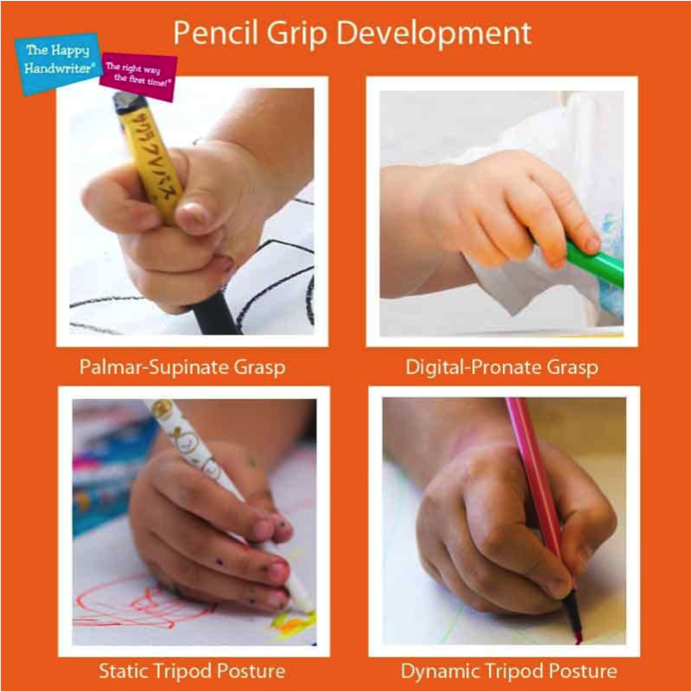 Anak-anak mengembangkan kemampuan untuk menggunakan jari-jari mereka untuk menggenggam pensil secara lebih presisi, meskipun masih ada sedikit kekakuan dalam pergerakan. Biasanya berkembang pada usia 2 - 3 tahun.